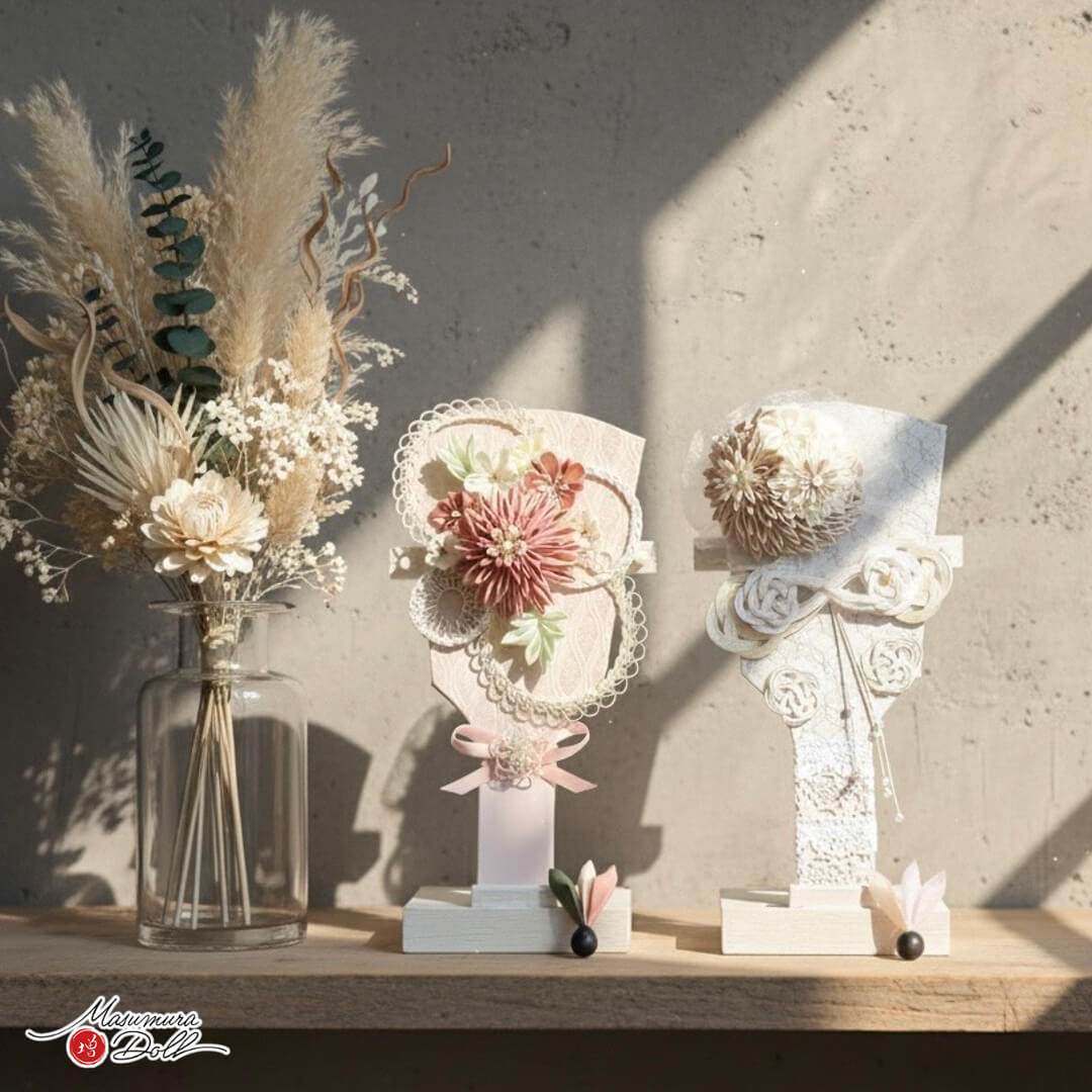 羽子板 おしゃれ かわいい インテリア 今どき 正月 女の子 上品 選べる 2種類 8号 正絹 つまみ 細工 羽子板 くすみピンク ベージュ 増村人形店 MMN0301