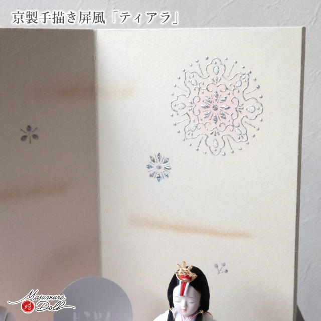 桜や草花をモチーフにしたやわらかな筆致は、お雛様を一層引き立て、お子さまの成長とご家族の幸せを願う晴れの日にふさわしい佇まいを添えます。