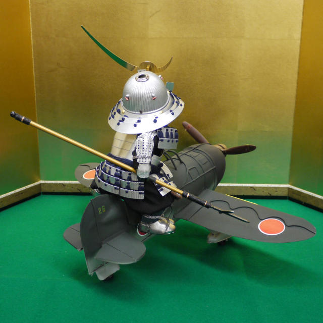 五月人形 子供大将 5月人形 皐月人形 兜鎧飾り 壱三 壹三(いちぞう)わんぱくパイロットゼロ戦 シルバー上杉謙信 増村人形店 10000377