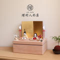 三日月と満月をイメージして作った無垢の国産杉100%の飾り台。 木の温かみが感じられる杉の赤みの強い部分と白みの強い部分を使用し、主役の引き立つシンプルな魅力のある飾台が出来上がりました。