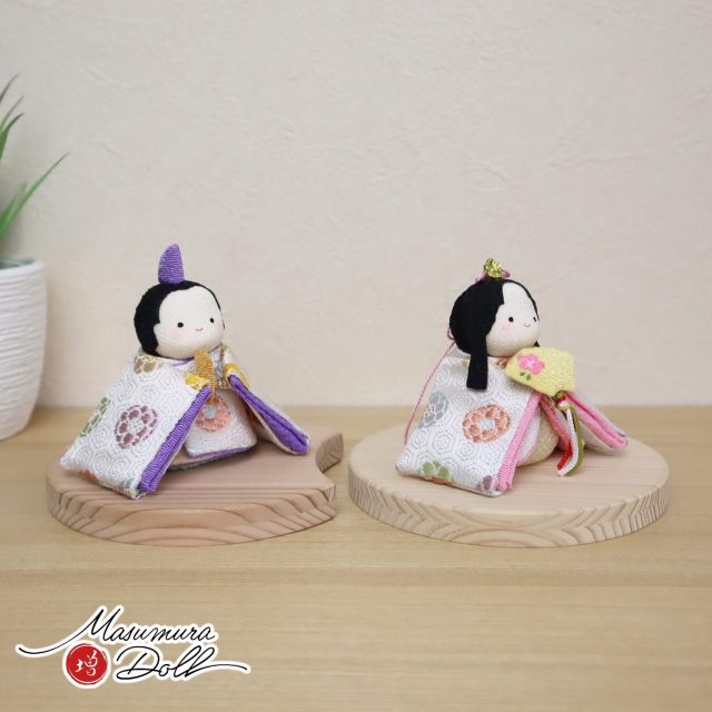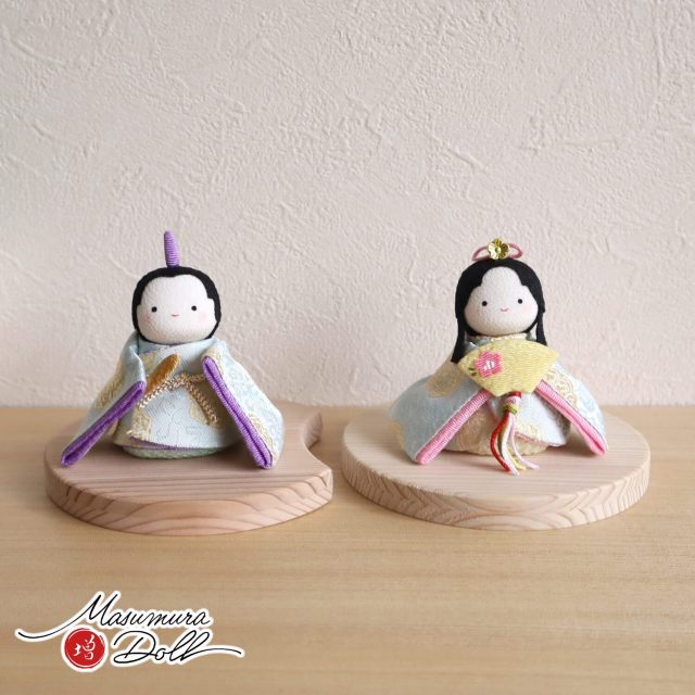 雛人形 選べる二種類 ★ (白地色々丸/水色唐花)京都ちりめん細工増村別注ひな人形 京製正絹西陣織シルク使用 国産杉製月飾台(小) コンパクト ひな人形 小さな ミニ かわいい 手のひらサイズ 10000757