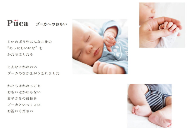 こいのぼりやおひなさまの “あったらいいな”を かたちにしたらこんなにかわいいプーカのなかまがうまれました。かたちはかわってもおもいはかわらない、お子さまの成長をプーカといっしょにお祝いください。
