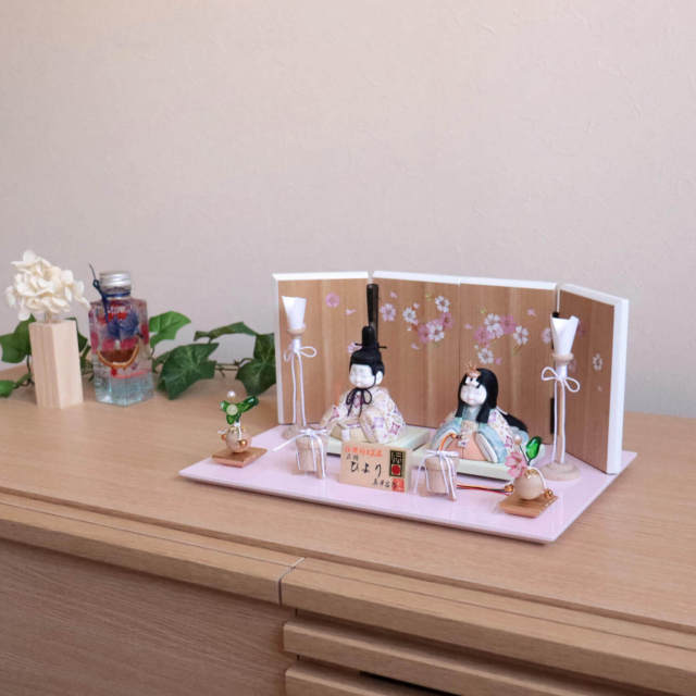 雛道具の本場静岡製の完全純国産手作り品!透明感のある透き通ったお花とナチュラルにこだわったころんと可愛い台。