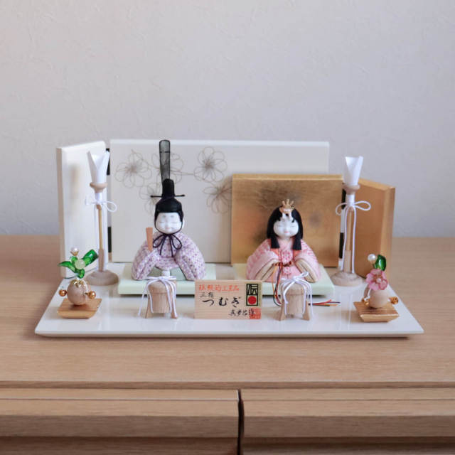 雛道具の本場静岡製の完全純国産手作り品!透明感のある透き通ったお花とナチュラルにこだわったころんと可愛い台。