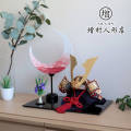 五月人形 伝統工芸士 誠山作 10号 赤糸縅兜「月あかり」コードレス手漉き和紙 アヤメ 40cm飾り台 ムーン 月 ライト スタンド 10001187