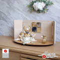 五月人形 ホワイト ゴールド 武将 徳川家康 兜 白木目レリーフ細工屏風 クリアフラワーゴールド桜 ナチュラル杉製楕円台 増村人形店 10001641