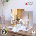 五月人形 選べる2種類 ホワイト ゴールド 戦国武将 徳川家康 白糸兜 豊臣秀吉 共吹き返し兜 L型屏風(金銀段違い) ヒノキ製本藤巻弓太刀 アイボリー平台 増村人形店 10001745
