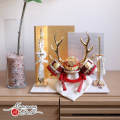 五月人形 レッド ゴールド 武将 真田 幸村 兜 赤糸 共吹き返し L型屏風(金銀段違い) ヒノキ製本藤巻弓太刀 アイボリー平台 衝立 増村人形店 10001746