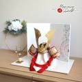 五月人形 伝統工芸士 誠山作 10号赤糸縅兜 金小札 無双結び 手描二曲幾何学桜紋様屏風 クリアフラワーゴールド梅 アイボリー平台 増村人形店 10001755