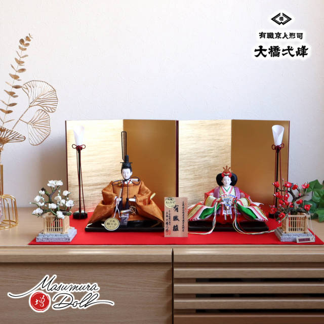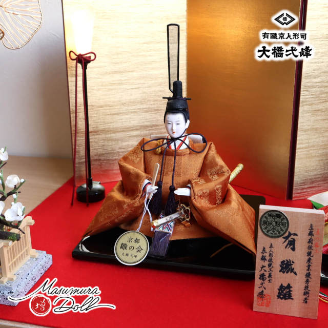 古典京雛の名匠、初代大橋弌峰を父にもつ二代目。京都鱗形屋九代目中村太兵衛氏に師事した初代は、60余年にわたって京人形にこだわり 磨き抜かれた技を二代目大橋弌峰へと見事に継承した。
