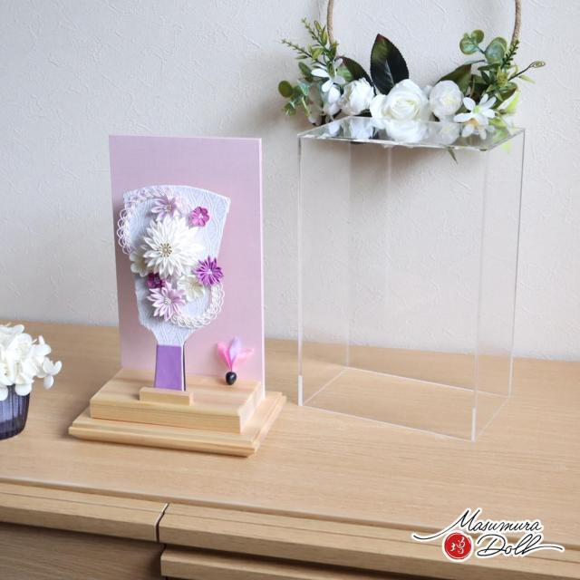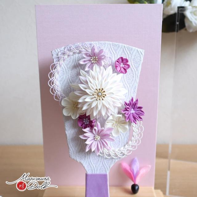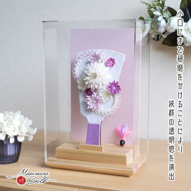 新作 羽子板 アクリルケース 6号正絹 つまみ細工 水引 パープル 羽子板 ミニ羽子板 ケース飾り 10002603