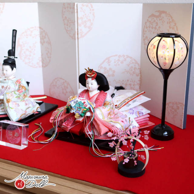 女雛の簪(かんざし)は本柘植に紅白梅の手描き仕様となっております。