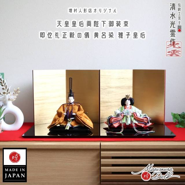 衣裳着の正統派本造りを信条とし、西陣袋帯大等の京呉服を素材とするこだわりのひな人形を職人の手作業で日々、丹念に作り続けています。