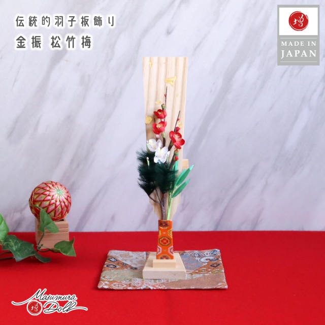 伝統的羽子板 本金箔金振 松竹梅 済美箔屏風飾り 正月 金襴付 赤毛氈飾り 10002773