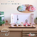 雛人形 新作 木村一秀作 桃山雛 唐花 桜 共柄 京からかみ屏風「桃色ライン梅丸」白塗り 木製燭台 貝桶 丸玉桜 ピンク紐 ナチュラル杉製平台 増村人形店 10002782