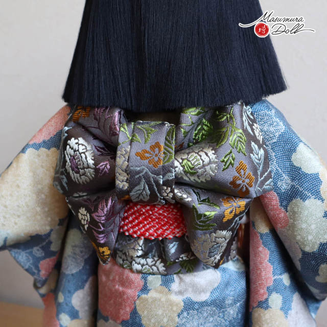 元賀章介作 12号(尺二)正絹 江戸小紋 松竹梅 藍色 越前塗台 市松人形 女の子 かわいい 上品 童 国産 雛人形 増村人形店 10003132