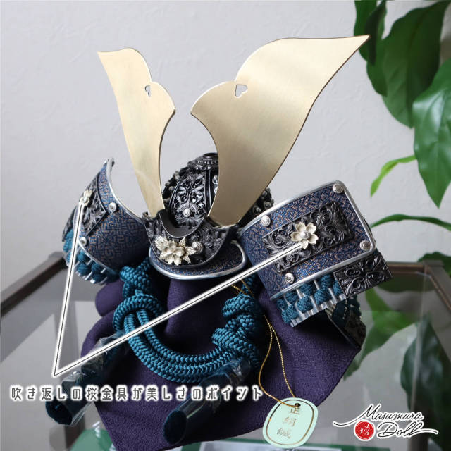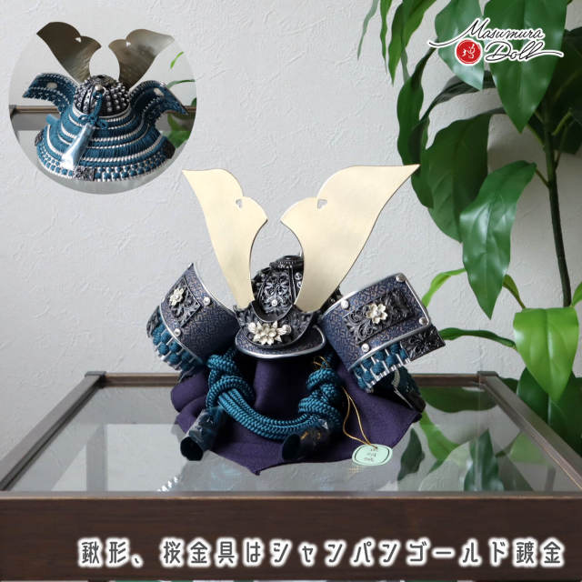 鍬形台と吹き返しへの3か所に桜金具があしらわれております。