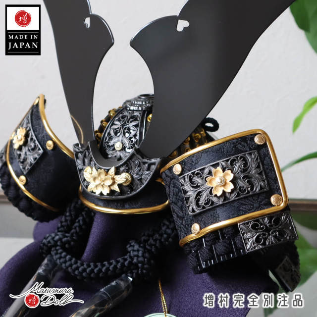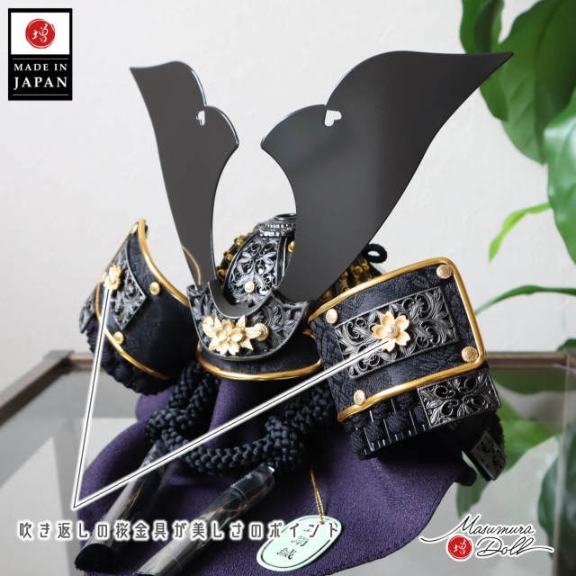 鍬形台と吹き返しへの3か所に桜金具があしらわれております。