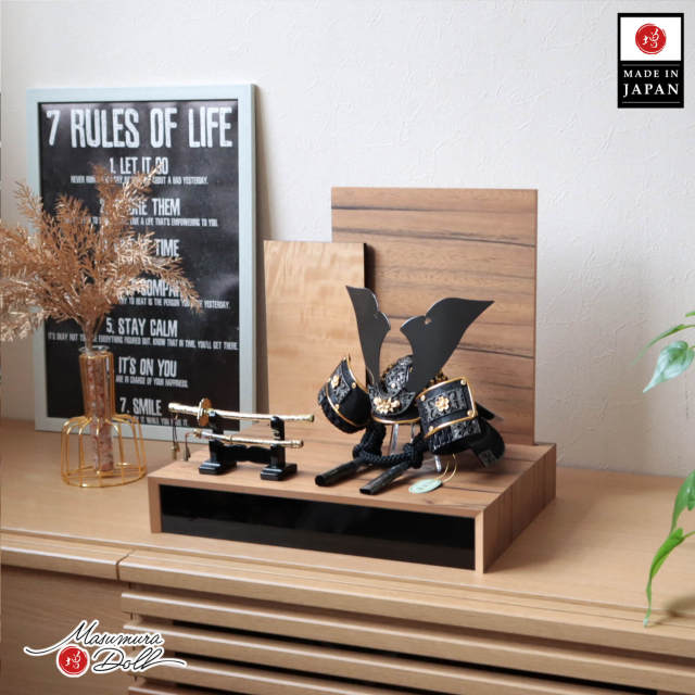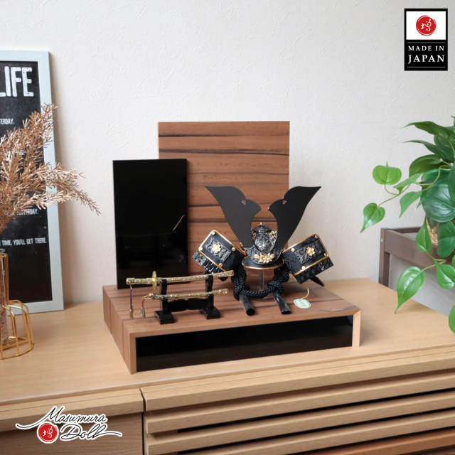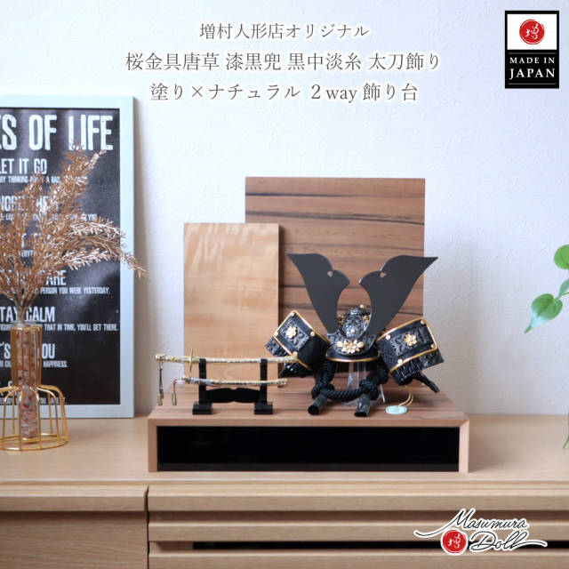 五月人形 コンパクト おしゃれ インテリア 兜飾り 5月人形 端午の節句 唐草桜金物 木製 衝立 リバーシブル 2way 増村人形店 10003344