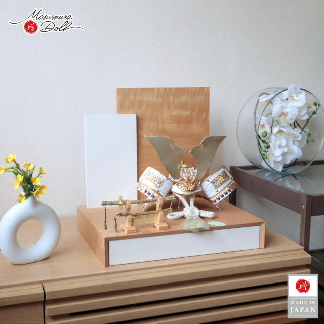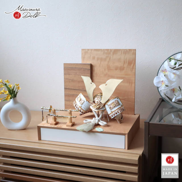 五月人形 コンパクト おしゃれ インテリア 兜飾り 5月人形 端午の節句 唐草桜金物 木製 衝立 リバーシブル 2way 増村人形店 10003348