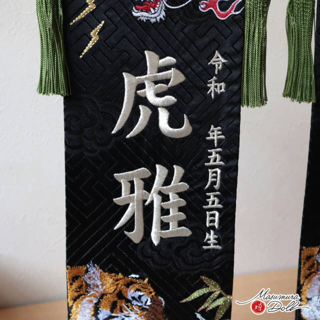 名前旗 男の子 かっこいい かわいい 五月人形 名前旗 おしゃれ 刺繍 選べる 文字色 金 銀 ジャガード 刺繍 神威龍虎伝 増村人形店 dou MMN0003421