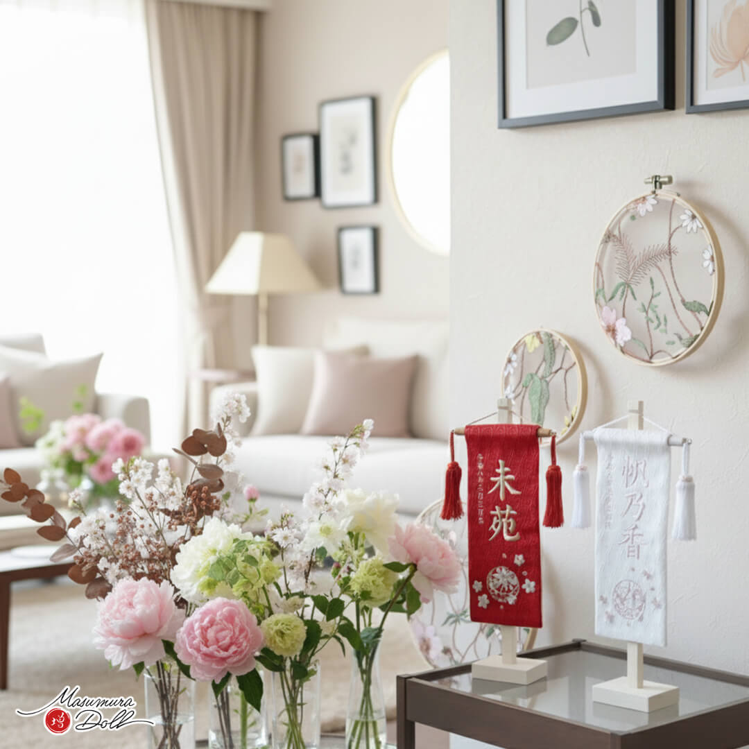 名前旗 女の子 かわいい 雛人形 名前旗 おしゃれ 刺繍 選べる 2種類 ジャガード刺繍名前旗 ミニ 赤マリ 白マリ 増村人形店 MMN3507