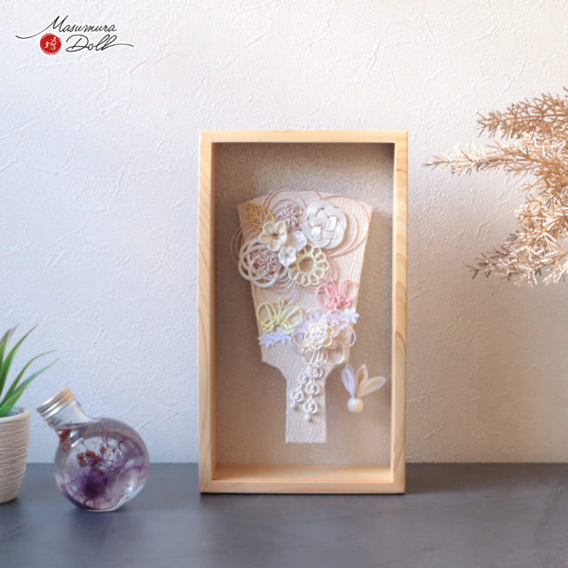 羽子板 ケース飾り おしゃれ かわいい インテリア 今どき 正月 女の子 上品 ピンク ラウンドアクリルケース つまみ細工 6号 羽子板 蝶 水引 増村人形店 MMN3657