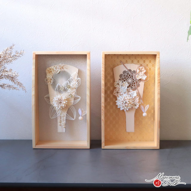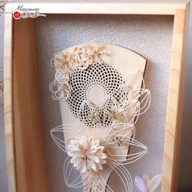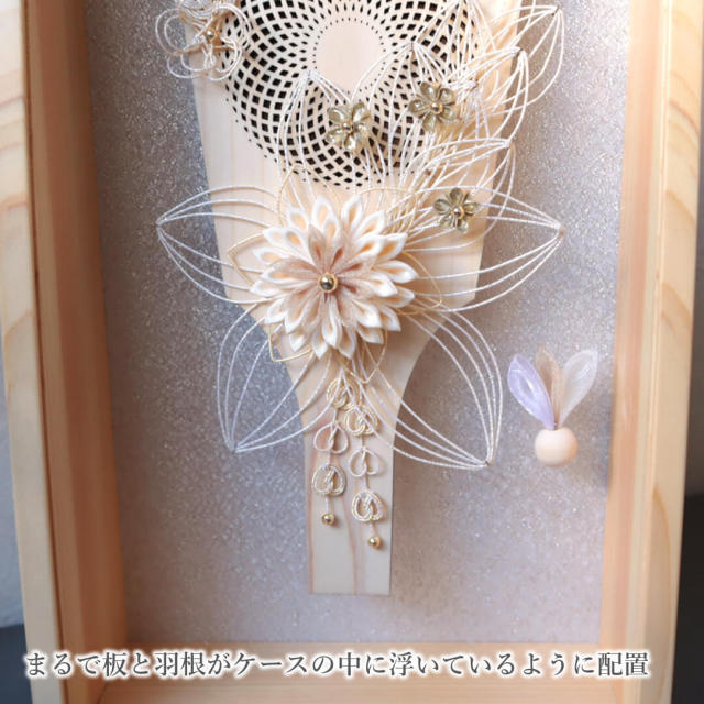 羽子板 ケース飾り おしゃれ かわいい インテリア 今どき 正月 女の子 上品 檜ヒノキ製羽子板 アクリルケース 8号 つまみ細工 増村人形店 MMN3659