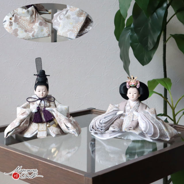 雛人形 コンパクト モダン おしゃれ インテリア ひな人形 おひなさま 柳 親王 モカ 菊 牡丹 かわいい お雛様 雛 親王飾り 増村人形店 MMN3662